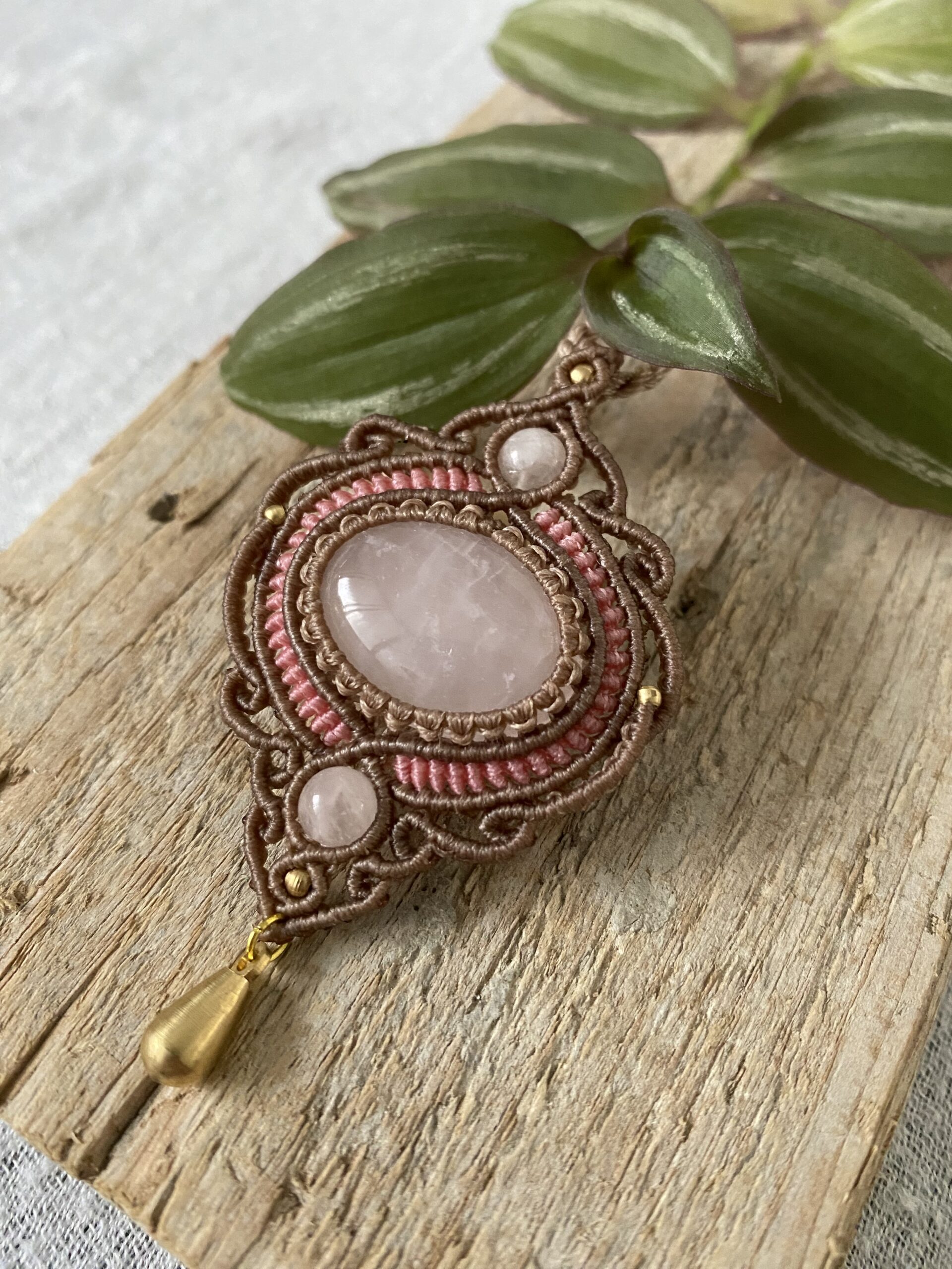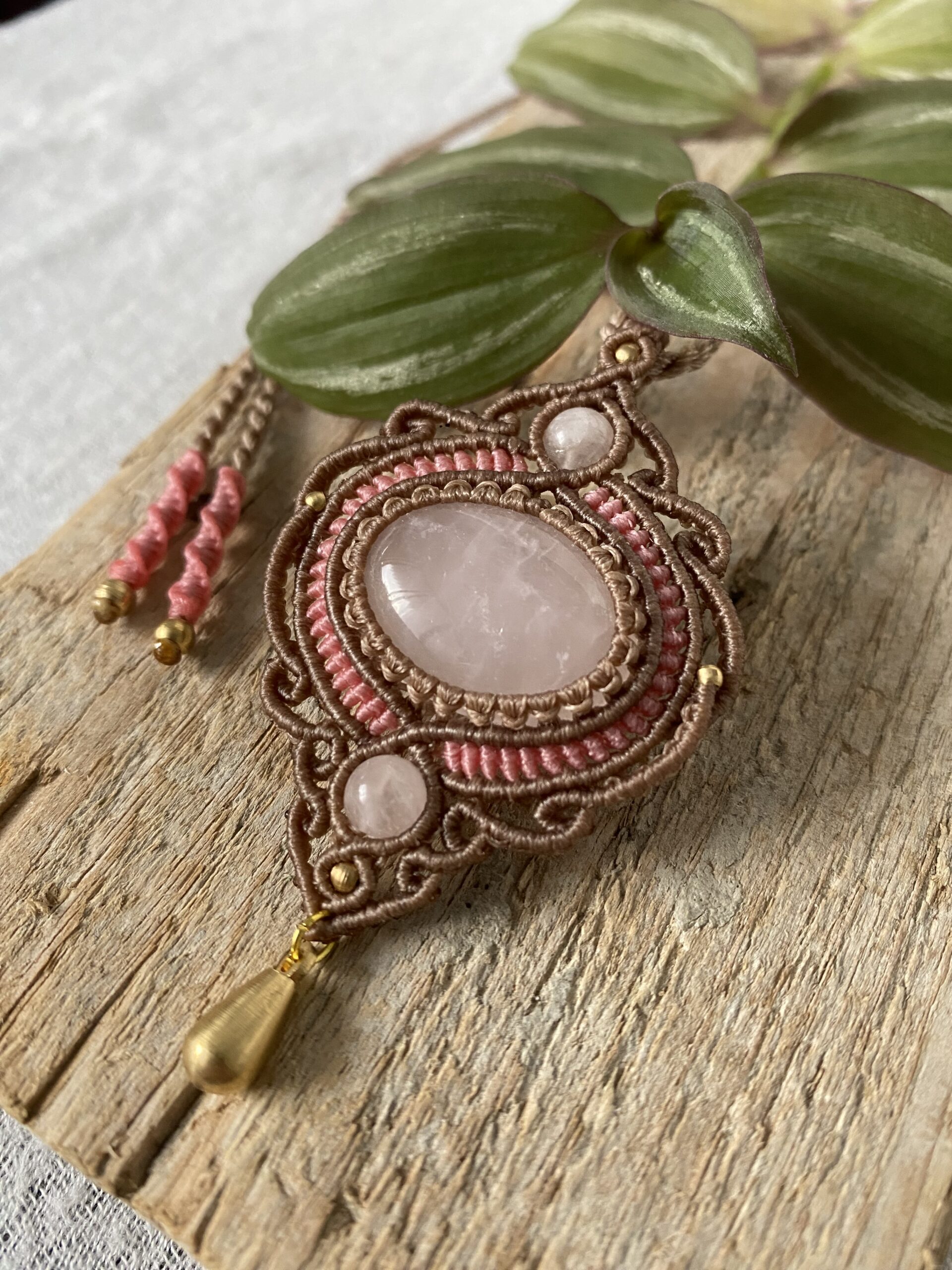 תליון מקרמה מרהיב בשילוב רוז קוורץ טבעי – יצירה עדינה שמביאה איתה שלווה, יופי ואנרגיה של אהבה.
